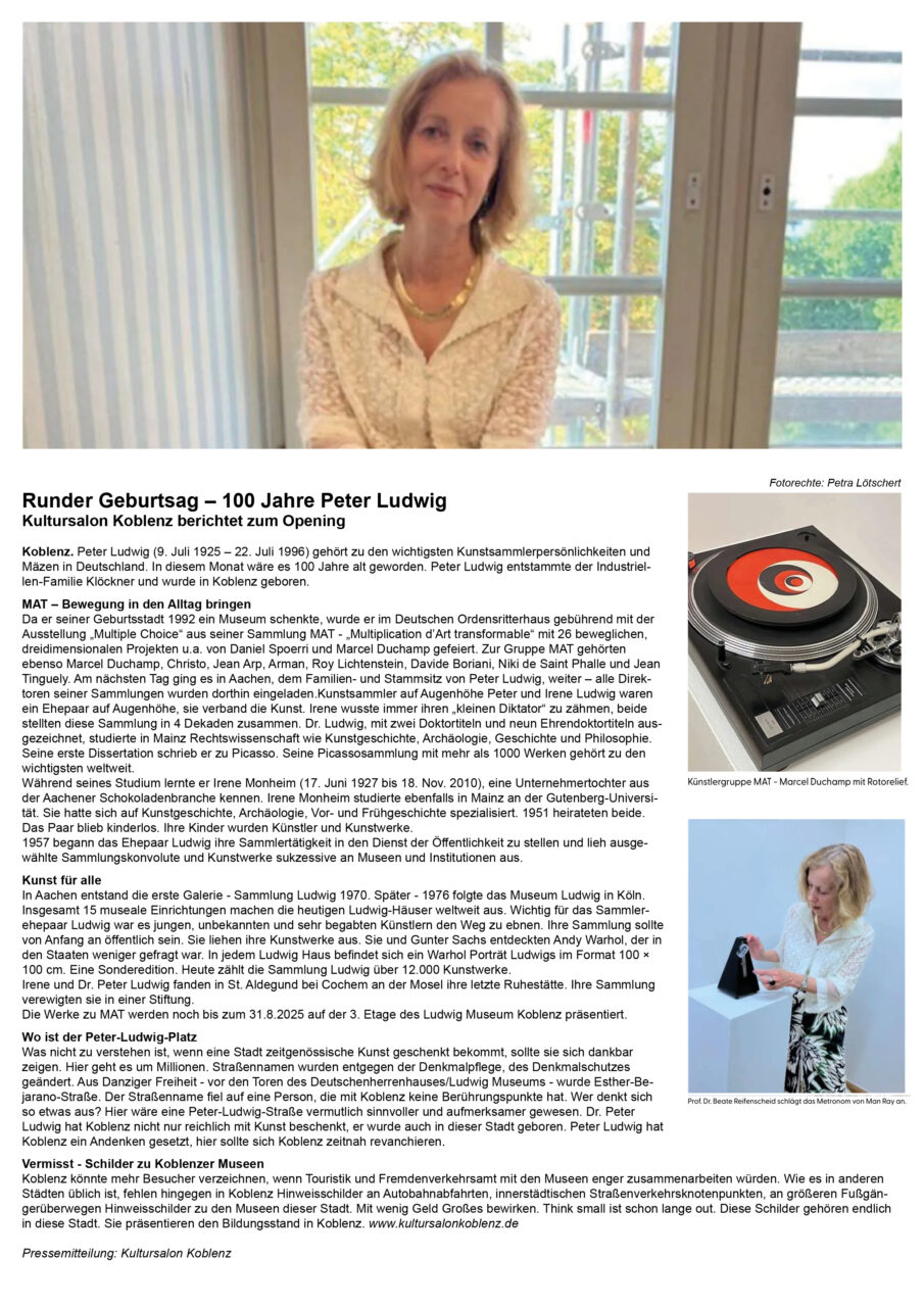 Januar 2025 Kunstexplosion in der Altstadt Der Kultursalon Koblenz begleitet zur Zeit der Schloss-Sanierung verschiedene Kulturprojekte in und um Koblenz